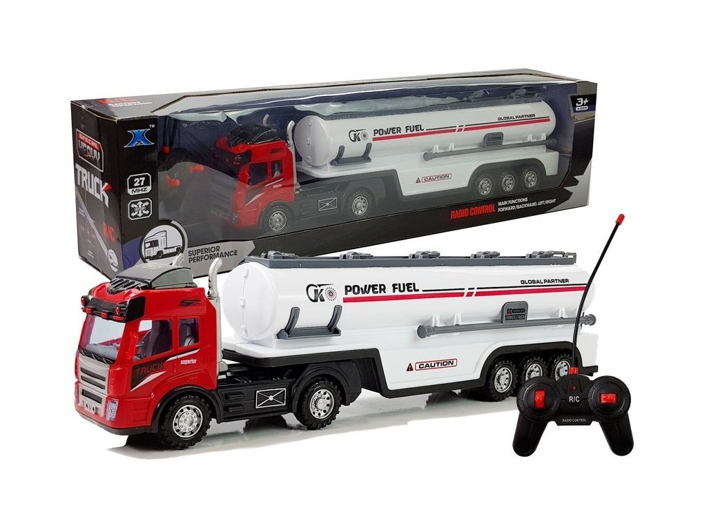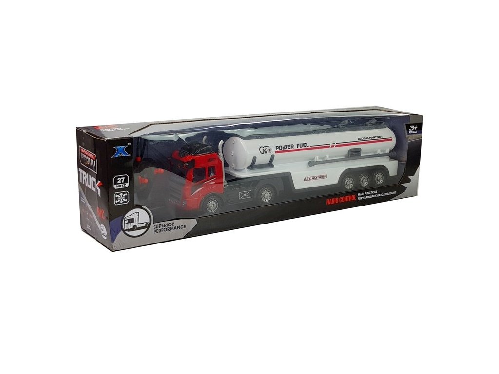 Цистерната с дистанционно управление е произведена от материали с най-високо качество. Проектът на играчката приоритизира безопасността на децата, поради което няма остри части. Кабината се захранва с 3 x "AA" батерии, а ремаркето с 4 x "AA" батерии, които не са включени в комплекта. Светлините и звуковите ефекти увеличават удоволствието от играта.