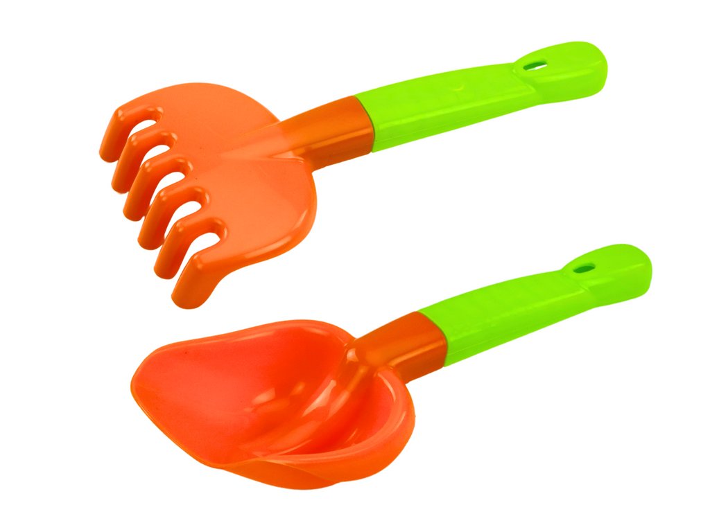Включена е и лопатка – основен инструмент за копаене, пренасяне и моделиране на пясъка. Лопатката позволява на децата да строят замъци, да създават тунели и други структури от пясък. В комбинация с греблата, които също са част от комплекта, децата могат да изглаждат повърхността на пясъка, да създават шарки и да откриват скрити съкровища.