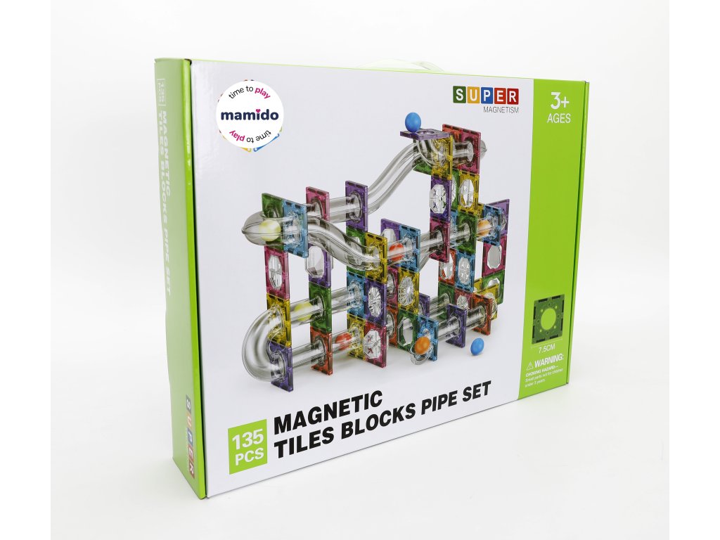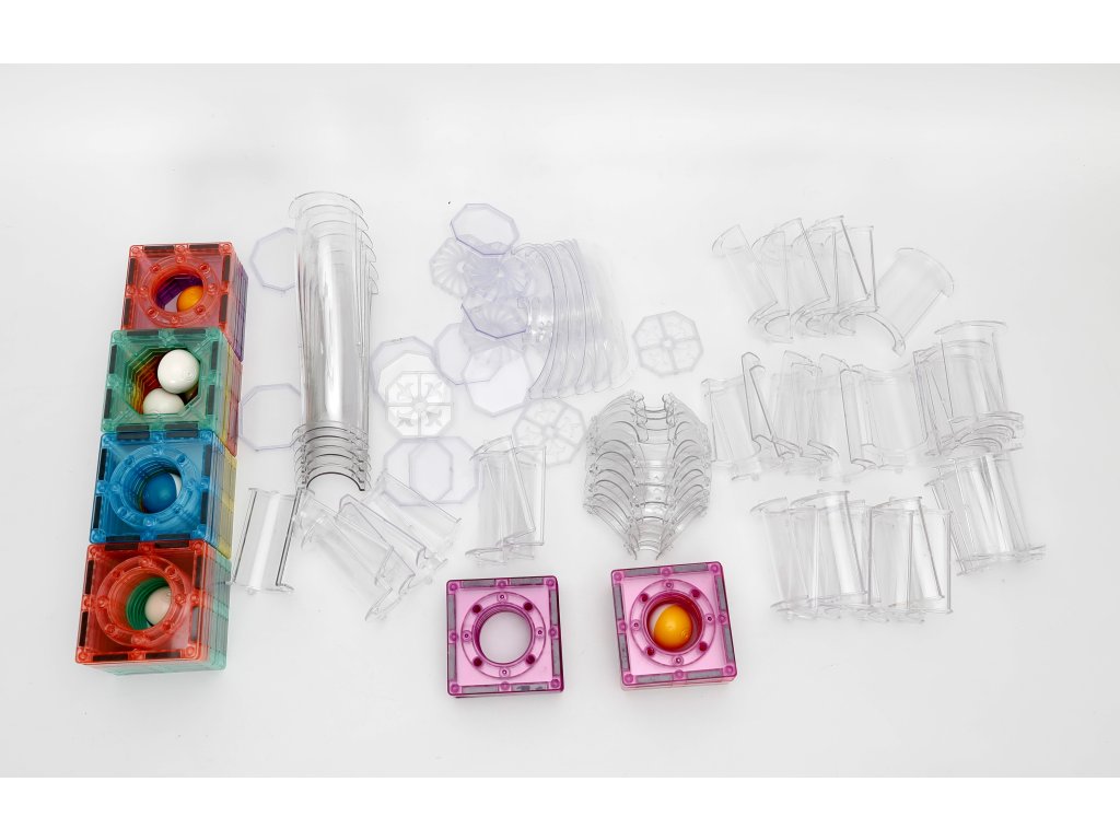 Благодарение на комбинацията от магнитни панели, тръби, завои и съединители, децата могат да създадат сложна 3D писта за топчета, която всеки път е различна. Магнитното свързване позволява бързо строене, здравина и безпроблемно преминаване на топчетата. Комплектът подпомага логическото мислене, креативността и планирането.