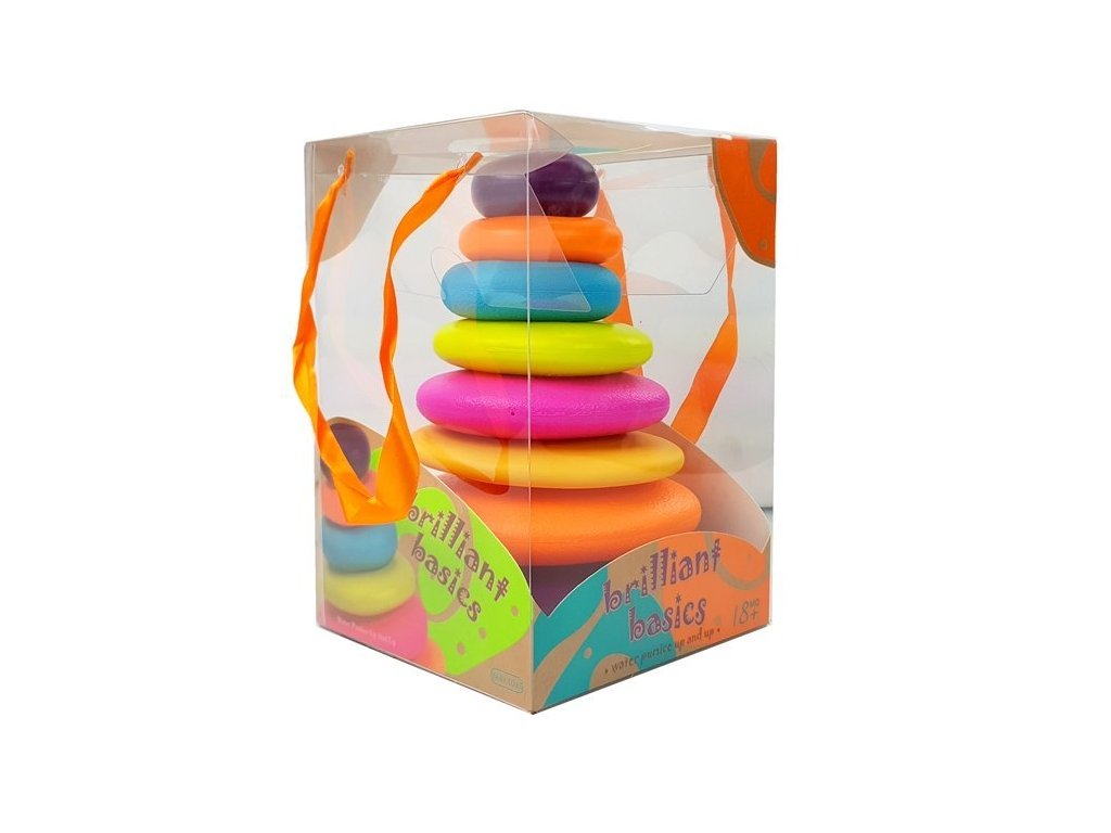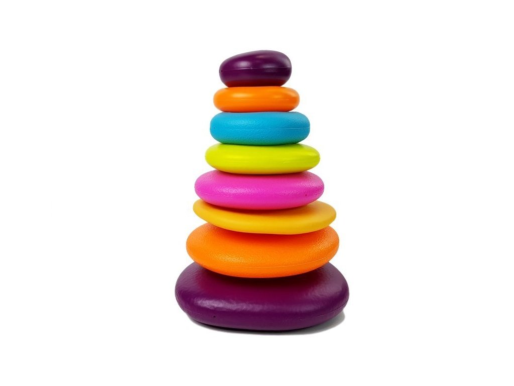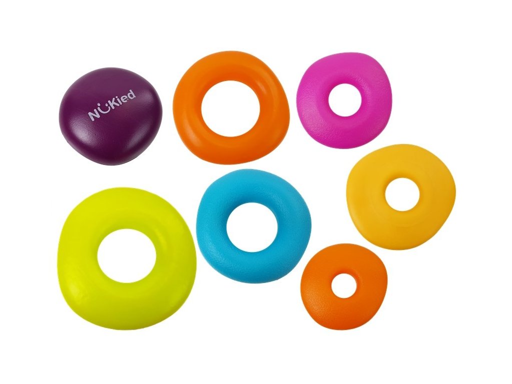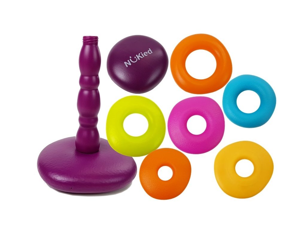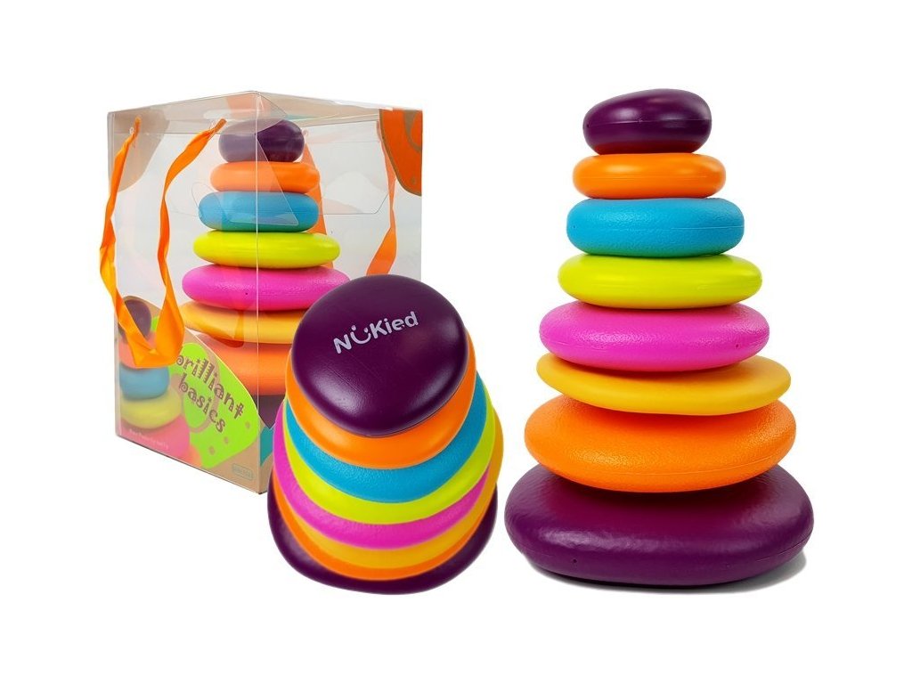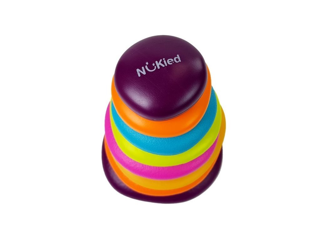 Цветен строителен комплект пирамида за най-малките NUKied съдържа 7 овала в различни цветове и форми. С този сглобяем комплект децата развиват своята моторика и логическо мислене.
