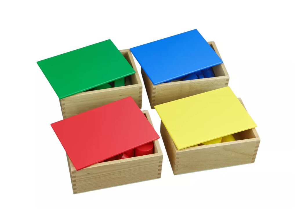 Цветните ролки без дръжки са сензорно помагало на Монтесори, което подпомага развитието на стереогностичното чувство. Помагалото съдържа 4 кутии, всяка с комплект от 10 ролки със същия размер като ролките с дръжки.