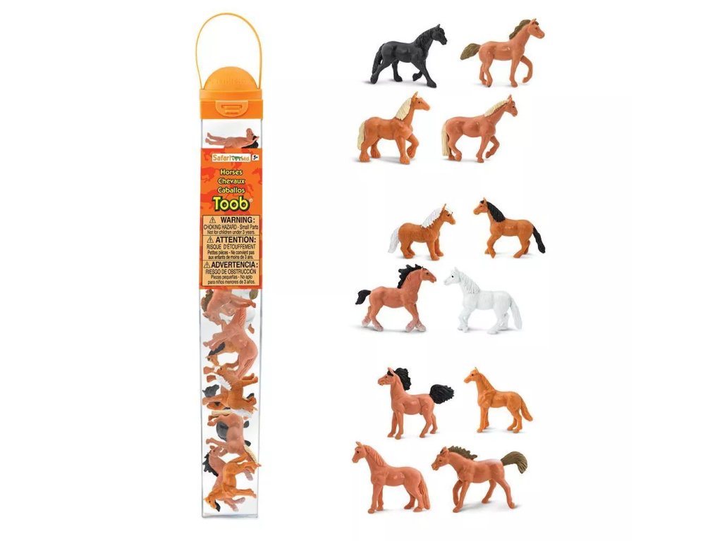 Тубата съдържа 12 реплики на коне с размер приблизително 4–7,5 cm. Включени породи и варианти: