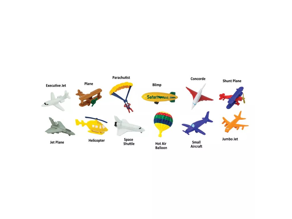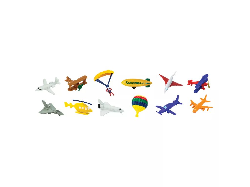 - Брой модели: 12 въздушни превозни средства (напр. реактивен самолет, балон с горещ въздух, дирижабъл, парашутист)