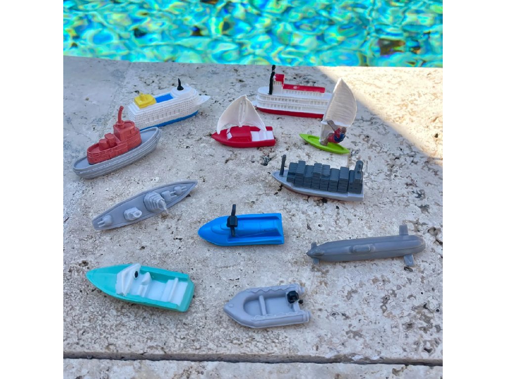 Тубата "Във водата" съдържа 11 реплики на лодки от различен тип с размер 4–7,5 cm.