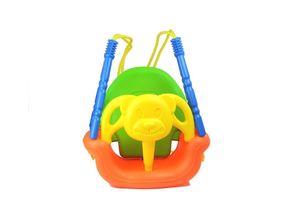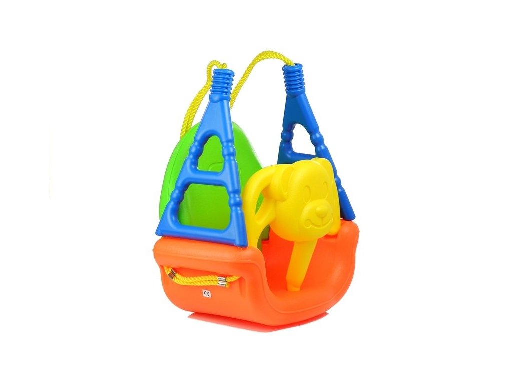 Удобна люлка - мече 3в1 е създадена с мисъл за децата - размерите и формата на седалката са адаптирани специално за тях, осигурявайки максимален комфорт. Удобна люлка - мече 3в1 е изработена от здрава и износоустойчива на атмосферни влияния материя. Люлката е подходяща както за градината, така и за използване в дома. С помощта на подвижните елементи лесно може да бъде пригодена към нуждите на детето, гарантирайки дългогодишна употреба.