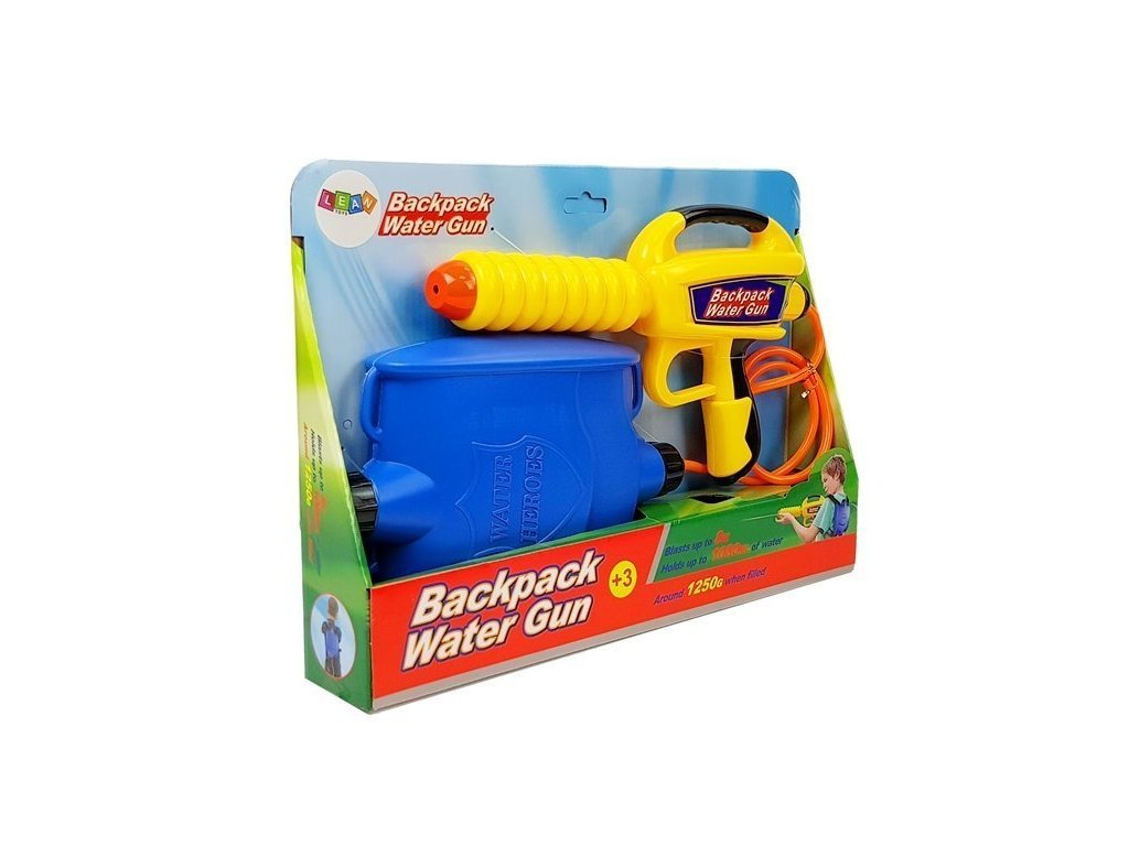 Воден пистолет с резервоар 1080 мл жълто-синьо е една от най-популярните летни играчки, подходяща за плаж, градина или басейн. Играта с него е забавна за всички деца, а водните битки са предпочитани и от възрастните. Голямото предимство на този комплект е, че резервоарът за вода може удобно да се носи на гърба, което не само подобрява играта, но и кара детето да се чувства като истински герой.