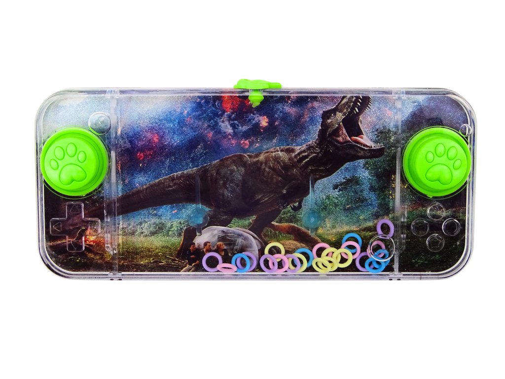 Класическа водна игра за умения с динозавър T-Rex, често срещана под формата на малка правоъгълна играчка. Механизмът ѝ е прост, но много забавен. Играта има правоъгълна форма, което я прави удобна за държане в ръка. От двете страни на устройството има по един зелен бутон, които са ключови за управлението и лесно достижими за пръстите на играча. Вътре, в прозрачния резервоар, пълен с вода, се намират цветни пръстени, които свободно се носят във водата. В долния край на играта изпъкват два щифта, на които трябва да се поставят пръстените. Тези щифтове са крайната цел, към която играчът се стреми.