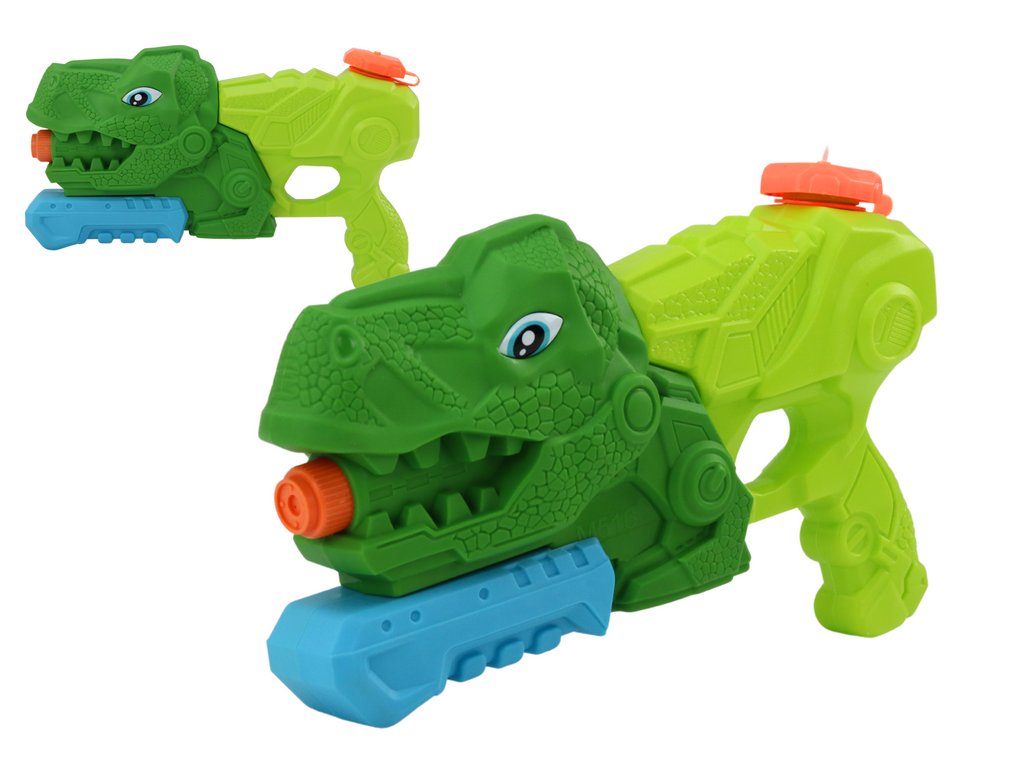 Воден пистолет с форма на динозавър, който ще зарадва всеки малък майстор на забавленията. Идеален избор за басейн или ваканция край водата, а дори и за Великденски празници! Децата ще се забавляват отлично, като в същото време е осигурена тяхната безопасност. Това е точното предложение! Състезания по стрелба или битки с такива уникални пистолети са истинско вълнуващо забавление. Играта ще донесе фантастично забавление за малчуганите, тъй като предлага множество варианти за развлечение — единствените ограничения са безопасността и детското въображение.