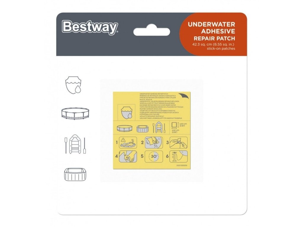 Водоустойчивите ремонтни лепенки за басейни и надуваеми играчки спасяват вашия надуваем басейн или плаващо устройство. С тези лепенки вече не е нужно да се притеснявате за дупки в надуваемите играчки, басейни или дюшеци. Те се закрепват с лепило, нанесено върху повърхността им. Приложението им отнема само няколко секунди и ще можете отново да се насладите на ефективността на вашите надуваеми аксесоари.