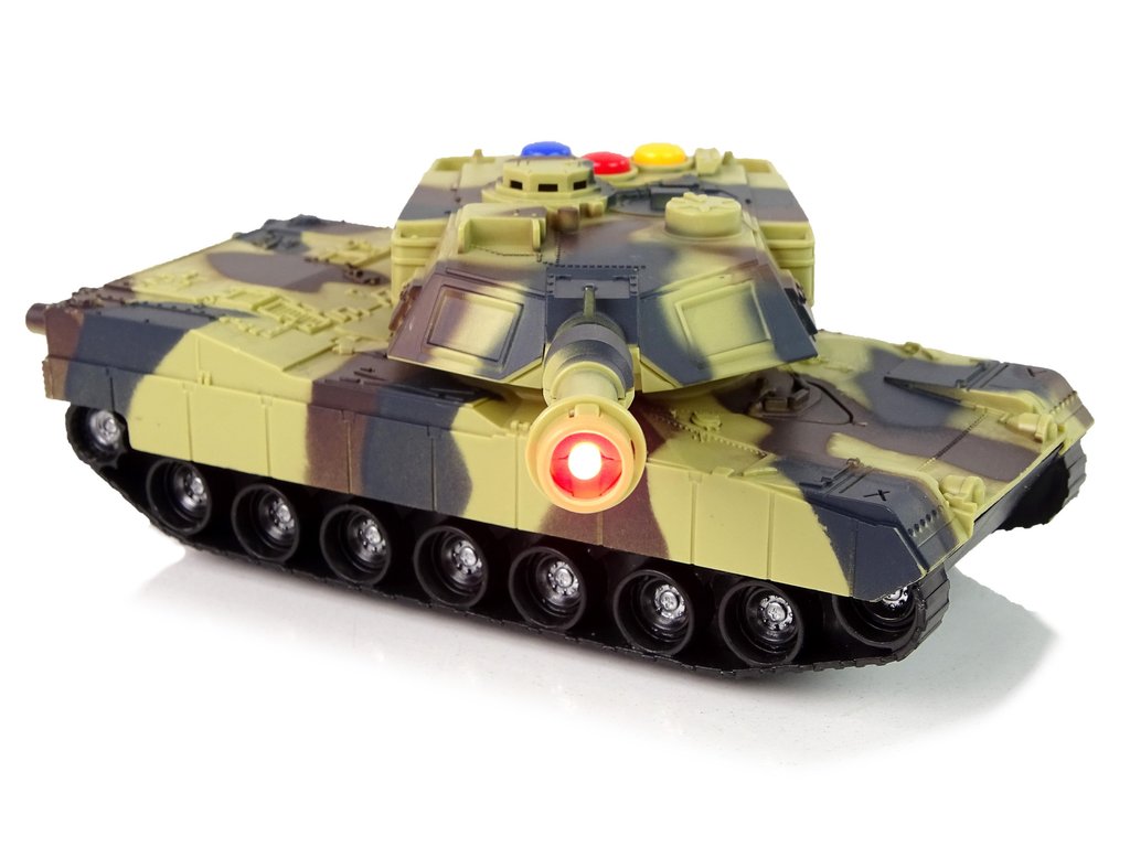 Изработен е от безопасен и нетоксичен пластмасов материал, което го прави здрава и устойчива играчка. Танковата пушка е подвижна и се върти на 360 градуса. От оръдието излиза червена светлина, която осветява стрелковата траектория. Произведен в мащаб 1:32.