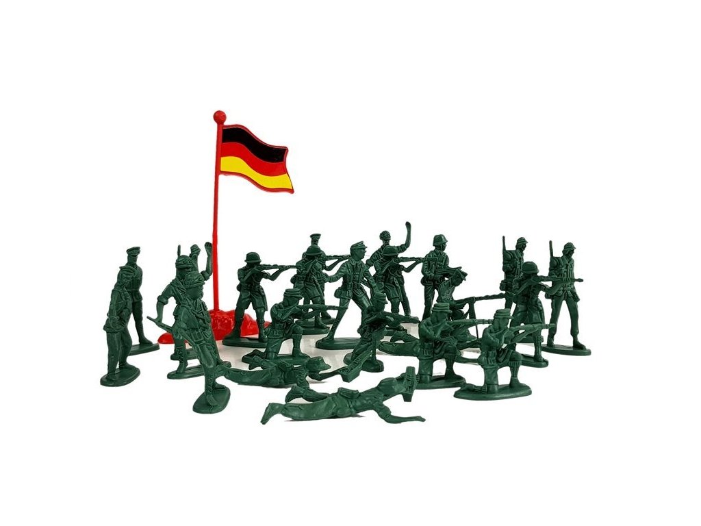 Войници голям комплект 100 бр. в зелено, сребристо и оранжево. Комплектът включва също 4 флага: Германия, Великобритания, САЩ и Япония.