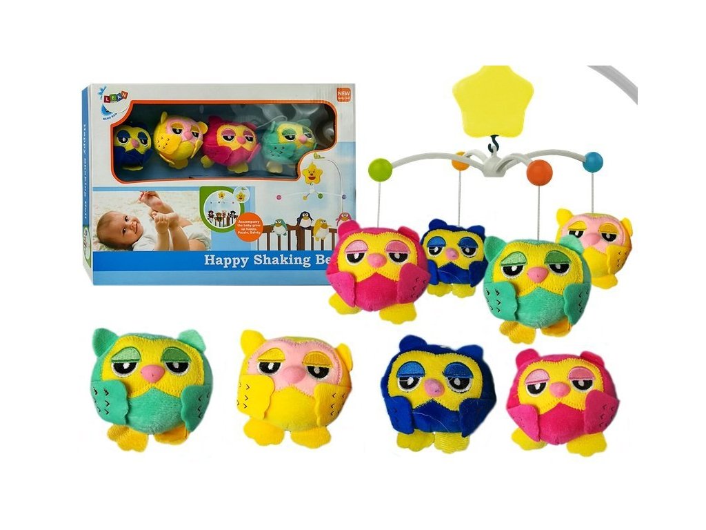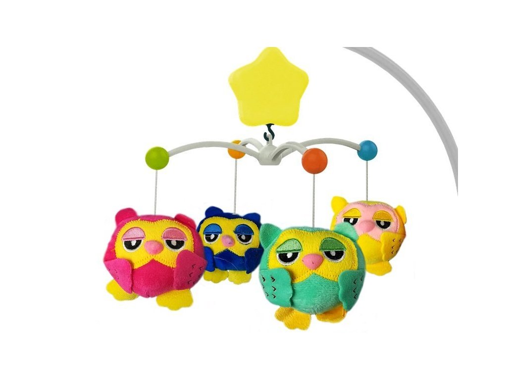 Въртележка за легло с бухалчета развива моториката и координацията на бебето. Цветна въртележка за легло успокоява бебето и му помага при заспиване.