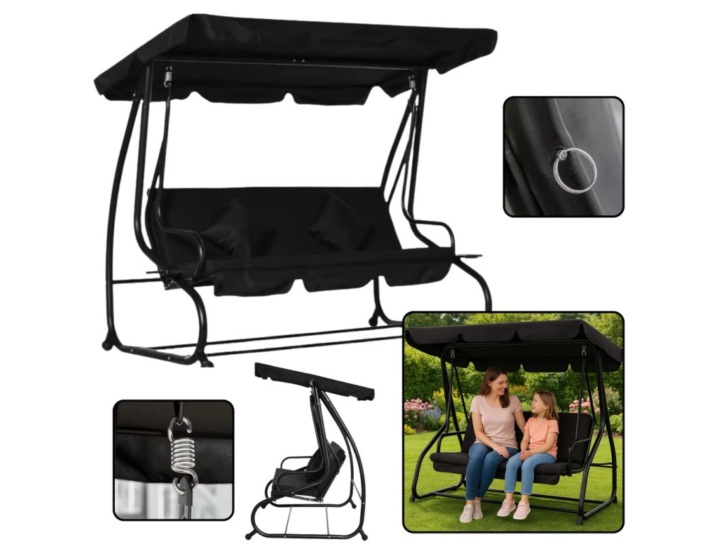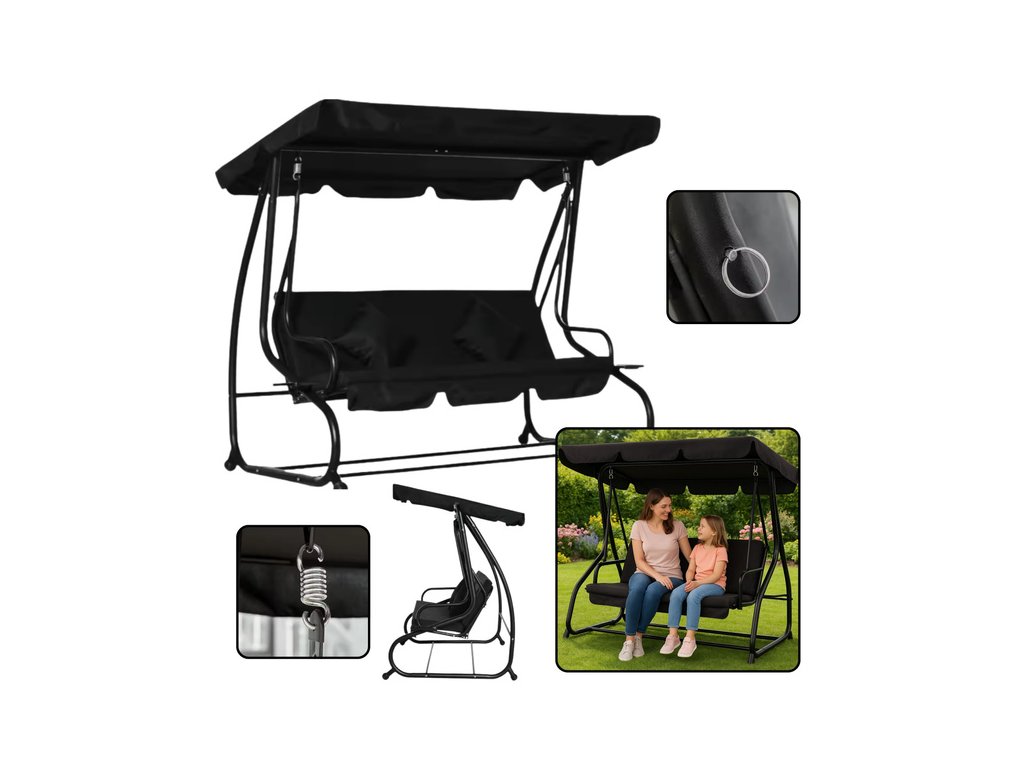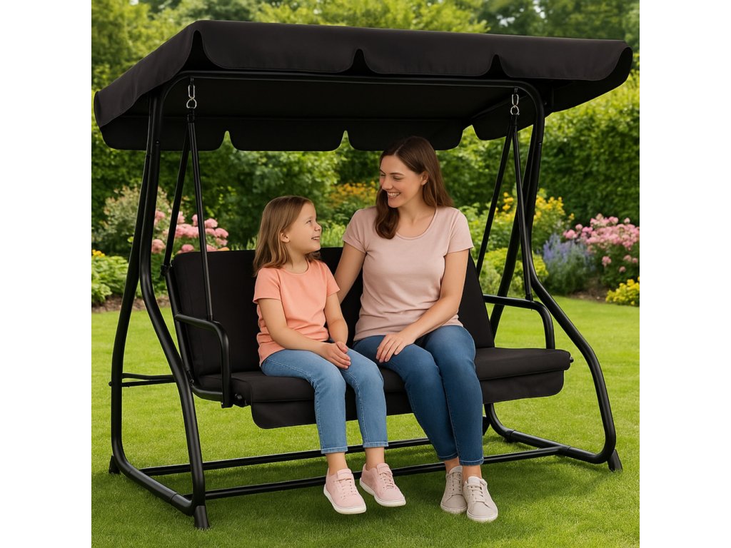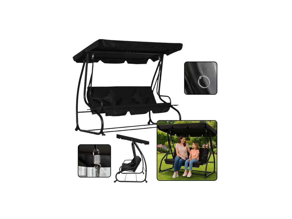 Здрава стоманена конструкция е прахово боядисана, което я предпазва от атмосферни влияния и повишава устойчивостта й на корозия. Благодарение на максималното натоварване до 280 кг и голямата площ за сядане в люлката могат да се поберат до четирима възрастни, което осигурява комфорт и безопасност при използване.