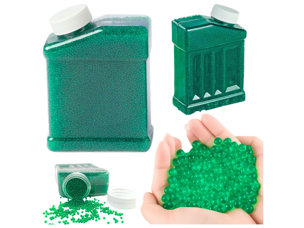 Този комплект от 20 000 гел топчета е идеален избор за всички собственици на гел топчести пистолети. Топчетата след накисване увеличават обема си до 7–8 мм и придобиват еластична, мека консистенция, която е безопасна за игра и динамична стрелба. Благодарение на наситено зеления цвят, те са добре видими на терена, а лесната подготовка и съхранение ги правят чудесно допълнение за всяко забавление.