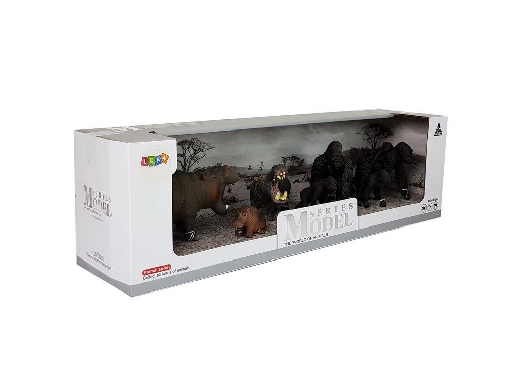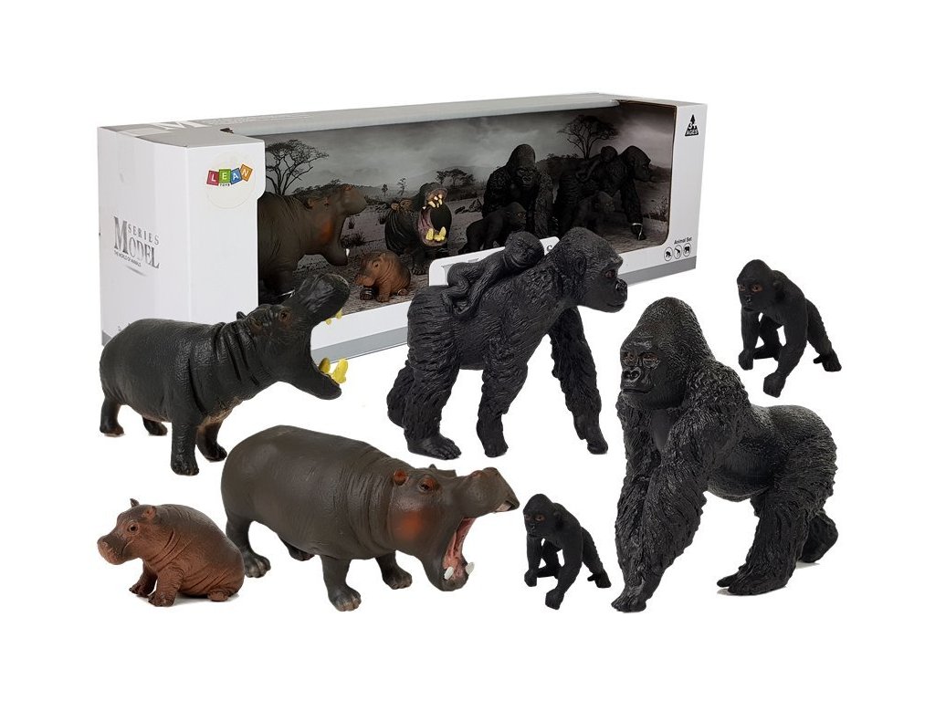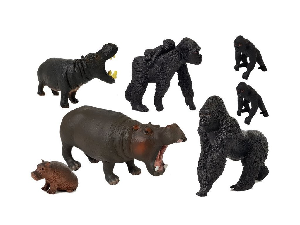 Животни сафари комплект 7 броя горили и хипопотами включва 7 фигурки. Комплектът съдържа две животински семейства - семейство хипопотами и семейство горили. Всяка фигурка е изработена и ръчно боядисана с внимание към детайла, което подчертава тяхната уникалност.